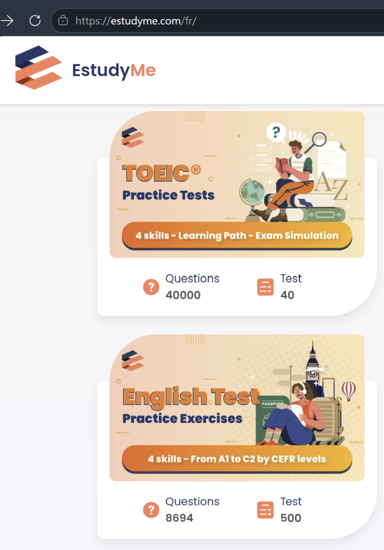 – Evaluer son niveau CERL (allez sur l’onglet « English test » + Préparer l’examen via l’onglet « TOEIC » gratuitement sur le site Estudyme.com